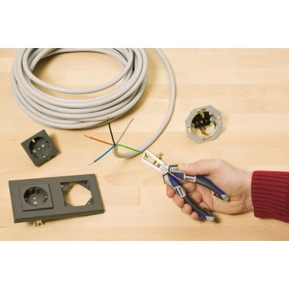 Die professionelle LUX-TOOLS Abisolierzange mit einer 3-Komponenten-Griffhülle gewährleistet eine bestmögliche Handhabung. Die Zange besitzt eine praktische Einstellschraube, ihre Schneiden sind scharf geschliffen