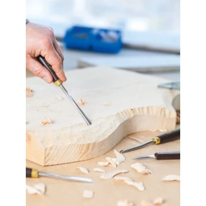 Der Kerbschnitzsatz Comfort eignet sich wunderbar für Einsteiger oder erfahrene Anwender, die eine Grundausstattung für Schnitzarbeiten benötigen. Das Set enthält neben vier Schnitzmessern, sechs Schnitzbeitel und einen hochwertigen Schleifstein mit zwei Körnungen. Die Einzelteile sind in einer formschönen Holzkiste untergebracht, in der jedes Teil seinen festen Platz. So können Sie die Schnitzwerkzeuge übersichtlich anordnen und haben alles jederzeit griffbereit. Die Klingen der Messer und Schnitzeisen sind aus rostfreiem Stahl gefertigt. Um exakte Schnitte und präzise Ergebnisse zu erreichen, können Sie die Schneiden der Werkzeuge mit dem mitgelieferten Schleifstein schärfen.