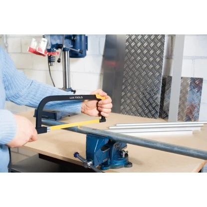 Der LUX-TOOLS Metallsägebogen mit 2-Komponenten Griff bietet eine Spannfunktion durch Drehen am Griff. Die Länge des HSS-Bi-Metallsägeblatts beträgt 300 mm.